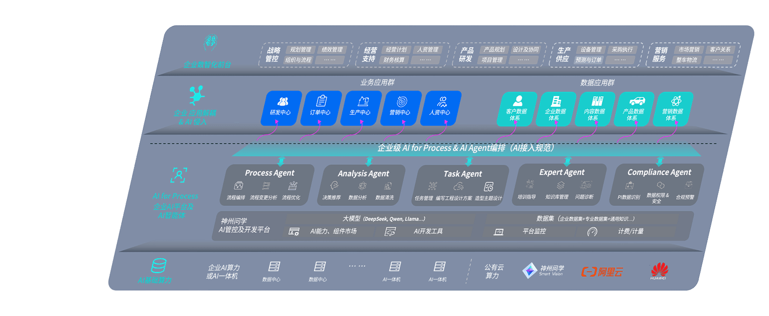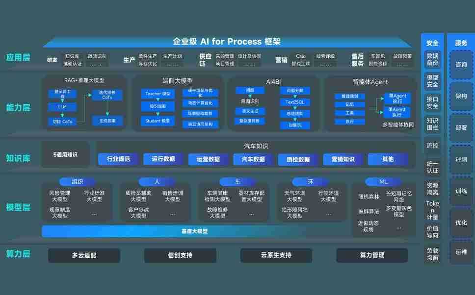 端到端的一站式AI工作空间深度融合了从企业战略规划到日常经营的全流程业务板块,,,,定向解决车企内部领域多、、、部门多、、、、链条长、、、场景碎片化等难题,,支持车企快速构建以AI为核心的生产力写作体系,,,,实现任务执行与AI能力的无缝集成与交互